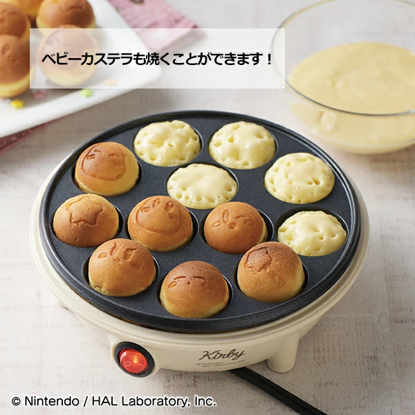 「電気たこ焼き器」は、カービィ&ワドルディの焼き型付きで、たこ焼きだけでなくベビーカステラも焼けて、おやつタイムがにぎやかに♪